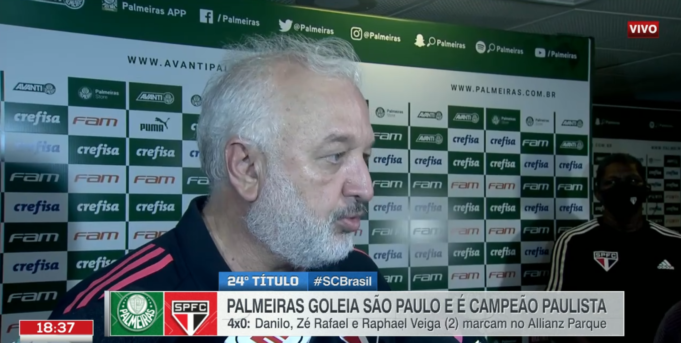 “O Palmeiras é um time muito forte, que está formado há muito mais tempo que nós. Estamos trabalhando, a insatisfação do torcedor é a nossa insatisfação com o resultado, mas não com os atletas, não com a comissão técnica, nós sabemos que todos deram o máximo. O trabalho continua e continua forte, temos mais três competições esse ano, a gente tem muito orgulho do que os jogadores fizeram este ano, é um trabalho que está começando na temporada e chegamos à final do Campeonato com um time que estamos formando e uma comissão técnica que a gente acredita. Portanto, o trabalho continua”.