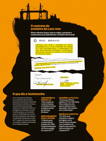 A Operação Lava Jato já concluiu que, a partir de 2010, pelo Estaleiro Rio Grande, escoaram propinas de cerca de R$ 100 milhões para os cofres do PT e aliados. A constatação foi extraída a partir de delações premiadas, dentre elas a do ex-gerente de Serviços da Petrobras, Pedro Barusco, e de Gerson Almada, vice-presidente da Engevix. A partir das próximas semanas, o Ministério Público terá acesso a um outro capítulo sobre as falcatruas que envolvem o estaleiro e, pela primeira vez, um documento com a assinatura da presidente Dilma Rousseff será apresentado aos procuradores que investigam o Petrolão. Trata-se do contrato que deu início a implementação do Estaleiro Rio Grande, em 2006. Dilma, na época ministra da Casa Civil, assina como testemunha. Renato Duque, ex-diretor de Serviços da Petrobras e hoje na cadeia, assina como interveniente, uma espécie de avalista do negócio.