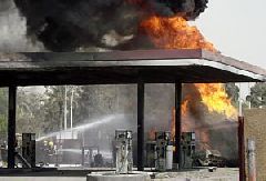 Sob condição de anonimato, dois policiais disseram que a explosão do caminhão-tanque teria sido obra de um militante suicida.
