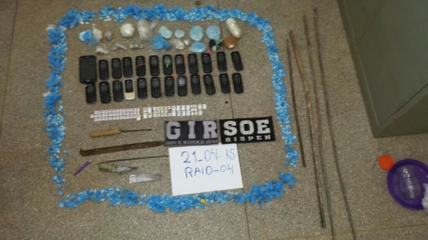 Ao dar continuidade as operações no feriado prolongado na Penitenciária Central do Estado (PCE) na terça-feira (21.04), dia de Tiradentes, agentes penitenciários apreenderam muita droga, celulares e armas artesanais. Todos os materiais ilícitos foram localizados no raio 4.