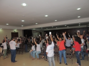 Em Assembleia Geral Extraordinária  da categoria acerca da ratificação do INDICATIVO DE GREVE para o próximo dia 02 de junho (terça-feira) que já tinha sido deliberado em Assembleia anterior (21/05).