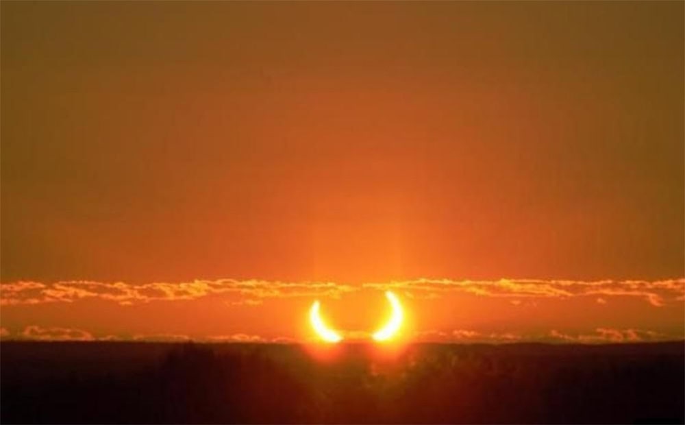 O evento terá uma característica especial em alguns pontos privilegiados: os chamados “chifres solares”. Esse efeito óptico ocorre quando o Sol surge no horizonte parcialmente encoberto pela Lua, criando uma ilusão de um rosto sorridente com extremidades pontiagudas.