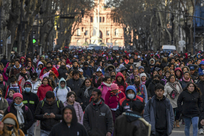 Em outro momento, o economista citou que tanto Brasil como Argentina sofrem do mesmo problema de pensar em “apagar incêndios” e não pensar no futuro. “Tanto lá como aqui, só estão preocupados em chegar no fim do mês, aqui no fim do ano. Brasil e Argentina têm muito potencial. Têm gente, riquezas naturais, infraestrutura e tudo para crescer muito. Mas aqui perguntam ‘qual que vai ser o PIB e a inflação desse ano’ em vez de pensar em ‘quanto que a gente vai crescer em 2032’, pensar no futuro. Temos foco no curto prazo e não vemos potencial no longo prazo”, concluiu. Na quinta, foram realizados protestos orquestrados por organizações e movimentos de esquerda que pediam salário básico universal, que corresponderia a 3 mil pesos, valor de uma cesta básica na Argentina, e um bônus de 20 mil pesos para pessoas aposentadas. Os manifestantes também se mostraram contrários à decisão do Banco Central de um dólar soja, medida proposta pelo Banco para liquidar a soja e obter 2,5 bilhões de dólares para encher as reservas do país, que sofre de falta de divisas. A inflação aumentou 5,3% em junho, o que também motivou protestos. Dentro dessa inflação, os setores que mais sofreram foram calçados, roupas, alimentos, saúde, água e eletricidade. Nos alimentos, os que mais aumentaram foram azeite de girassol, leite e alface.