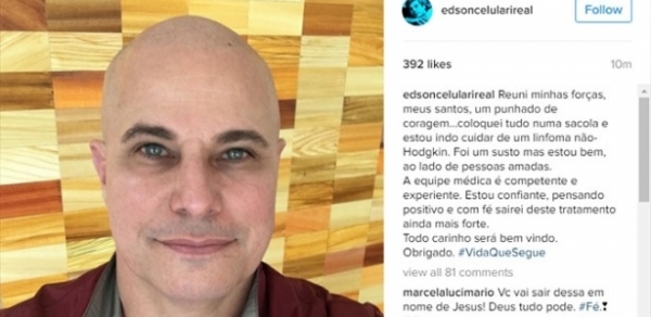 "Reuni minhas forças, meus santos, um punhado de coragem…Coloquei tudo numa sacola e estou indo cuidar de um linfoma não- Hodgkin. Foi um susto, mas estou bem, ao lado de pessoas amadas. A equipe médica é competente e experiente. Estou confiante, pensando positivo e com fé sairei deste tratamento ainda mais forte. Todo carinho será bem-vindo. Obrigado. #VidaQueSegue", escreveu em seu Instagram.