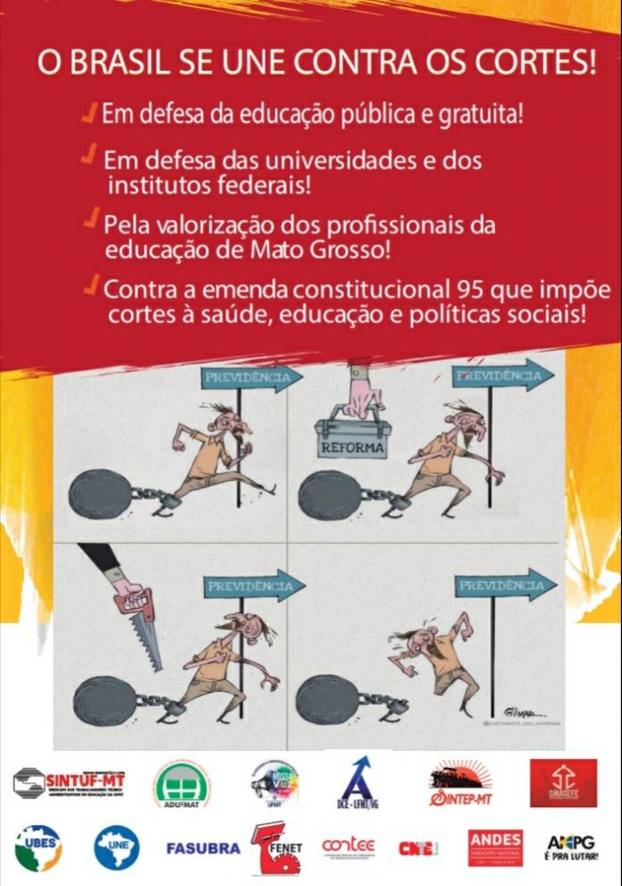 Na Universidade Federal de Mato Grosso (UFMT) a mobilização já começou. Desde o início da semana, docentes, estudantes e técnicos administrativos panfletam e espalham cartazes pela instituição. Na quinta-feira (30), dia do ato, as atividades serão paralisadas, e mais uma carreata atravessará a capital mato-grossense até o ato unificado, na Praça Alencastro, marcado para as 14h. Os manifestantes sairão da frente do Restaurante Universitário às 13h, dialogando com a população sobre os efeitos dessas políticas.