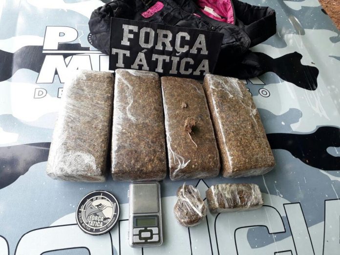 Na casa onde G.G.S.P. estava os policiais encontraram cerca de 4 quilos de maconha em tabletes, balança de precisão e pouco mais de R$ 440 em dinheiro. Além da menor, outros três homens foram detidos próximo da boca de fumo com porções de drogas.