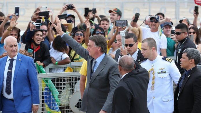 “Nosso país não pode continuar refém de uma ou duas pessoas, não interessa onde elas estejam. Essas uma ou duas pessoas ou entram nos eixos ou serão simplesmente ignoradas da vida pública. Vou continuar jogando dentro das quatro linhas. Mas a partir de agora não admito que outras pessoas, uma ou duas, joguem fora das quatro linhas. (…) A regra do jogo é uma só, respeito à nossa Constituição”, completou Bolsonaro.