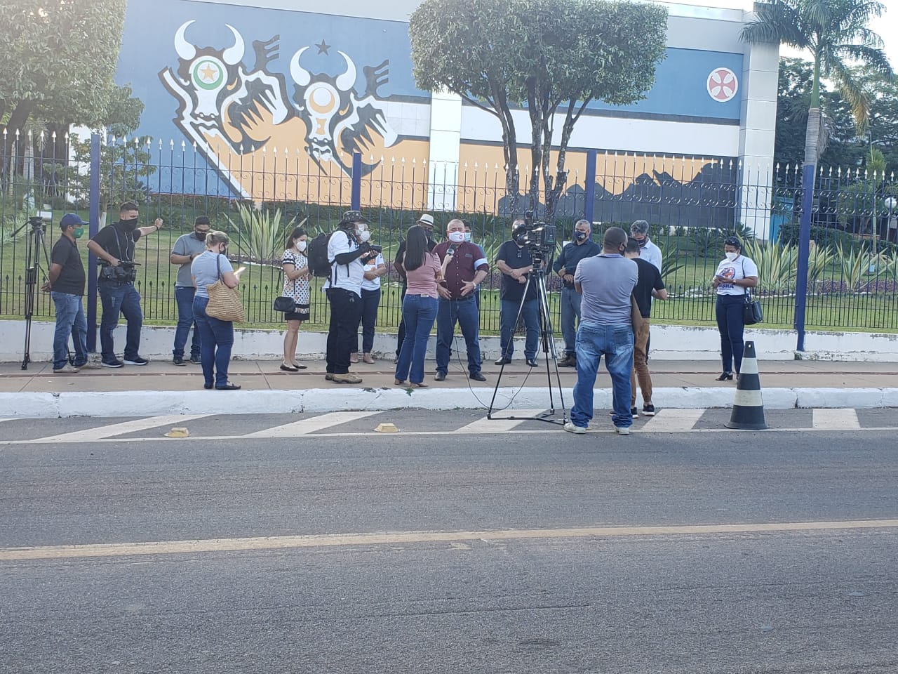 A coletiva foi realizada na tarde desta segunda-feira (07), em frente ao Palácio Paiaguás, sede do Governo do Estado.