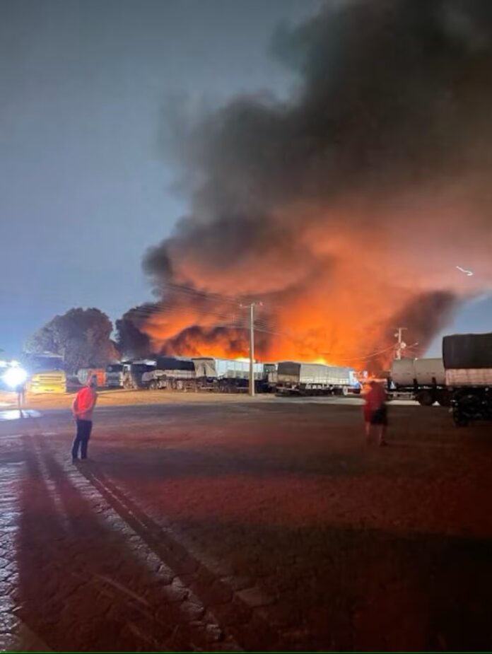Um incêndio de grandes proporções atingiu uma mecânica e borracharia próxima a um posto de gasolina em Sorriso, no Mato Grosso, na madrugada desta sexta (20). O fogo foi controlado por volta das 2h20.
