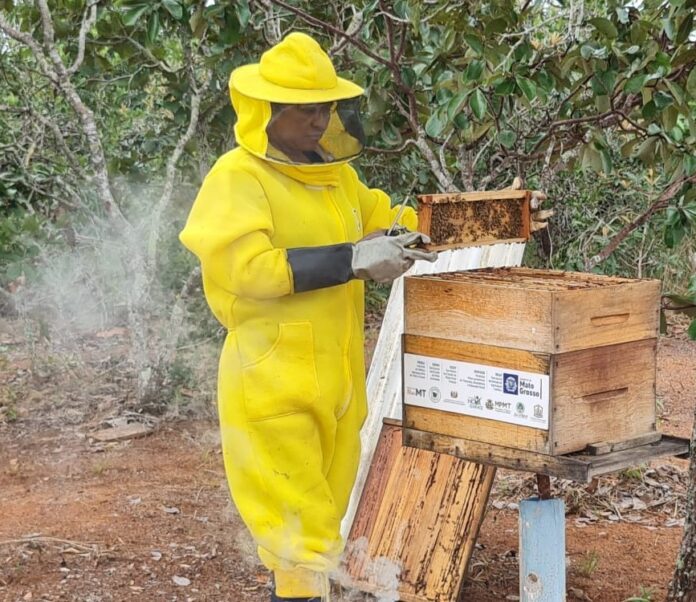 A produtora Rosilei Aparecida da Silva Almeida, 47 anos, e seu marido Ailton Assis de Almeida, 56 anos, estão encantados com o resultado na produção de mel na propriedade deles em Chapada dos Guimarães (a 67 km de Cuiabá). Com assistência técnica da Empaer (Empresa Mato-grossense de Pesquisa, Assistência e Extensão Rural), e apoio da Secretaria de Estado de Agricultura Familiar (Seaf), o casal realizou a primeira coleta, com 90 litros de mel que foram vendidos a conhecidos e nos mercados locais.