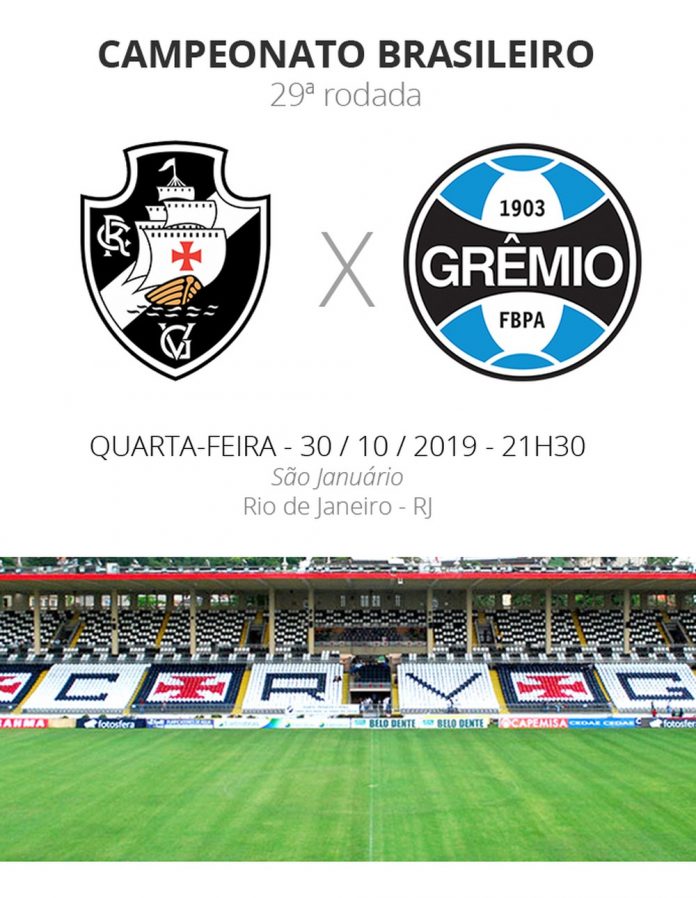 Vasco e Grêmio se enfrentam nesta quarta-feira, às 21h30 (de Brasília), em São Januário, pela 29ª rodada do Campeonato Brasileiro. Depois de empatar com o Ceará fora de casa, o Cruz-Maltino tenta retomar as vitórias diante do Tricolor, que venceu o Botafogo por 3 a 0 na última partida.