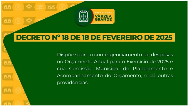 Conforme o Decreto 18/2025, a partir da atual gestão, cada secretaria receberá sua cota orçamentária bimestral de forma contingenciada, de acordo com a análise da execução orçamentária e financeira do período.
