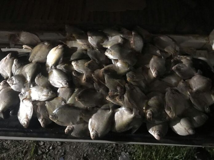 Em um dos patrulhamentos, na estrada vicinal de acesso à comunidade Barranco Alto, em Santo Antônio de Leverger, fiscais da Coordenadoria de Fiscalização de Pesca da Sema, com apoio da Delegacia Especializada de Meio Ambiente (Dema), encontraram em um veículo com nove exemplares da espécie piraputanga, que está na lista de espécies de pesca proibida pelo Decreto 677-24 que regulamenta a Lei de Transporte Zero. O pescado e o veículo foram apreendidos e o condutor foi autuado e conduzido a Central de Flagrantes para que fossem tomadas providências cabíveis.