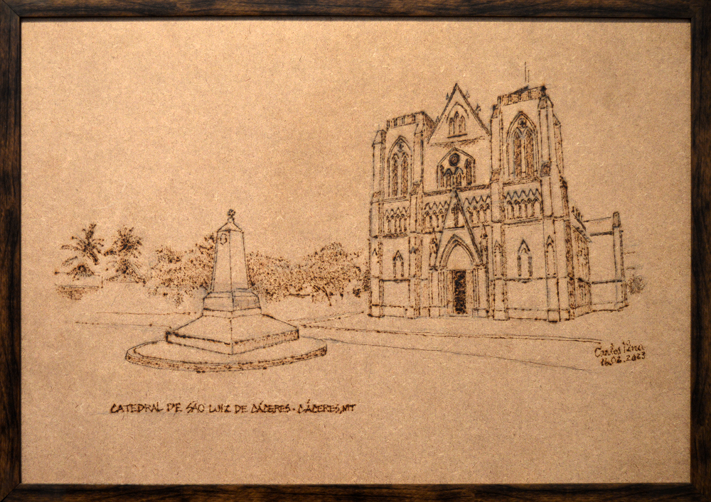 Entre os desenhos da mostra estão igrejas e templos de várias cidades mato-grossenses, incluindo a Catedral São Luís, de Cáceres, inspirada na Catedral de Notre Dame, de Paris. O prédio levou 46 anos para ser construído, entre os anos de 1919 e 1965, e é um símbolo do patrimônio histórico e cultural mato-grossense.