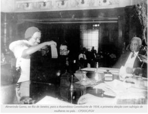 A história da advogada negra, Almerinda Gama, ilustra bem esse cenário. Eleita como representante classista, do Sindicato das Datilógrafas, para a Assembleia Constituinte de 1934, Gama foi a única constituinte mulher, ao lado de Carlota Pereira de Queirós, em meio a 252 homens. Ela escreveu artigos e participou ativamente do movimento por representação política.