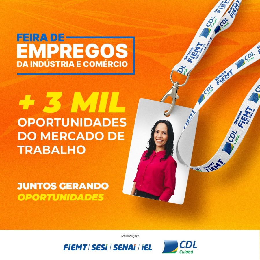 A Feira de Empregos da Indústria e Comércio terá oportunidades com salários de até R$ 15 mil dependendo da área de atuação. São mais de 3 mil vagas de trabalho ofertadas por cerca de 300 empresas. Dessas, 50 estarão presencialmente realizando o processo de escolha e contratação dos interessados. O evento será realizado no dia 16 de outubro, das 7h às 19h, nas instalações da Fatec Senai, em Cuiabá.