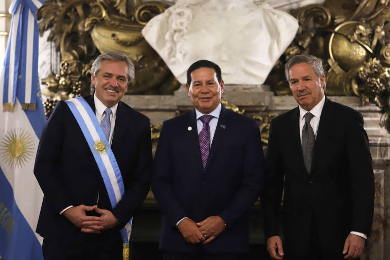O Brasil foi representado pelo general Hamilton Martins Mourão, que fez questão de repassar um recado de Bolsonaro a Fernández: