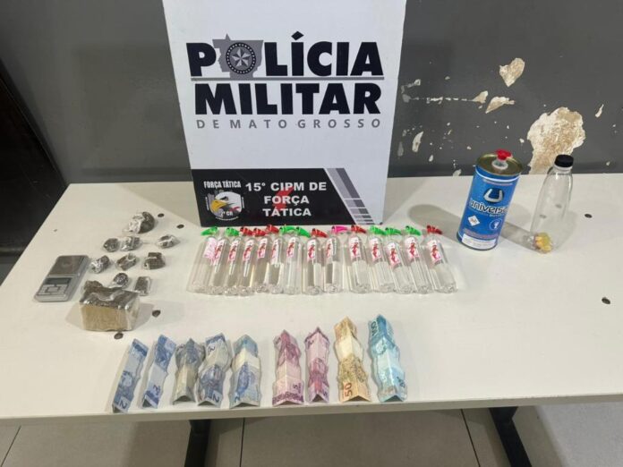 Policiais militares da Força Tática do 2º Comando Regional prenderam um homem, de 18 anos, e uma mulher, de 34 anos, por tráfico ilícito de drogas, na tarde desta segunda-feira (27.1), em Cuiabá e Várzea Grande. Nas ações, foram apreendidos oito tabletes e porções de maconha, pasta base e cocaína e frascos de lança-perfume.