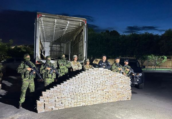 Após a denúncia, os agentes militares realizaram uma força-tarefa com objetivo de interceptar o veículo, sendo localizado imediatamente. Durante abordagem e busca veicular, as equipes flagraram 409 tabletes de cocaína, escondidos em um compartimento falso do caminhão, pesando aproximadamente 422,55 quilos.