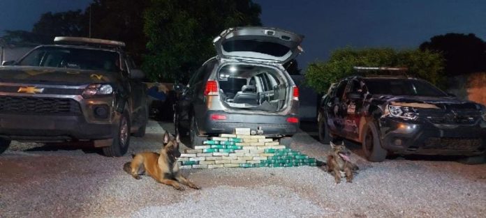 No interior do carro foi encontrado um compartimento secreto com 65 tabletes de substância análoga a paste base de cocaína, pesando aproximadamente 67 quilos. O suspeito, o veículo e os entorpecentes foram encaminhados à Delegacia Especial de Fronteira (Defron) para o registro do boletim de ocorrência. O prejuízo ao crime é de pouco mais de R$ 1,2 milhão.