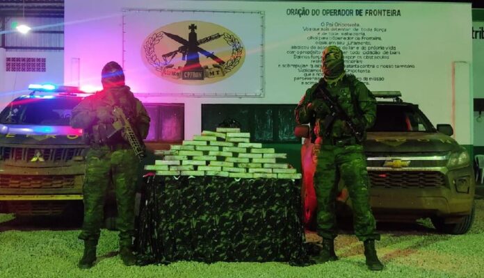 O Grupo Especial de Segurança de Fronteira (Gefron) apreendeu nesta quinta-feira (09.02), em Vila Bela da Santíssima Trindade, uma carga de 40 quilos de pasta base de cocaína avaliada em mais de R$ 2,8 milhões. O entorpecente era levado por um adolescente de 17 anos, em um grupo de suspeitos que entrou em confronto a equipe.