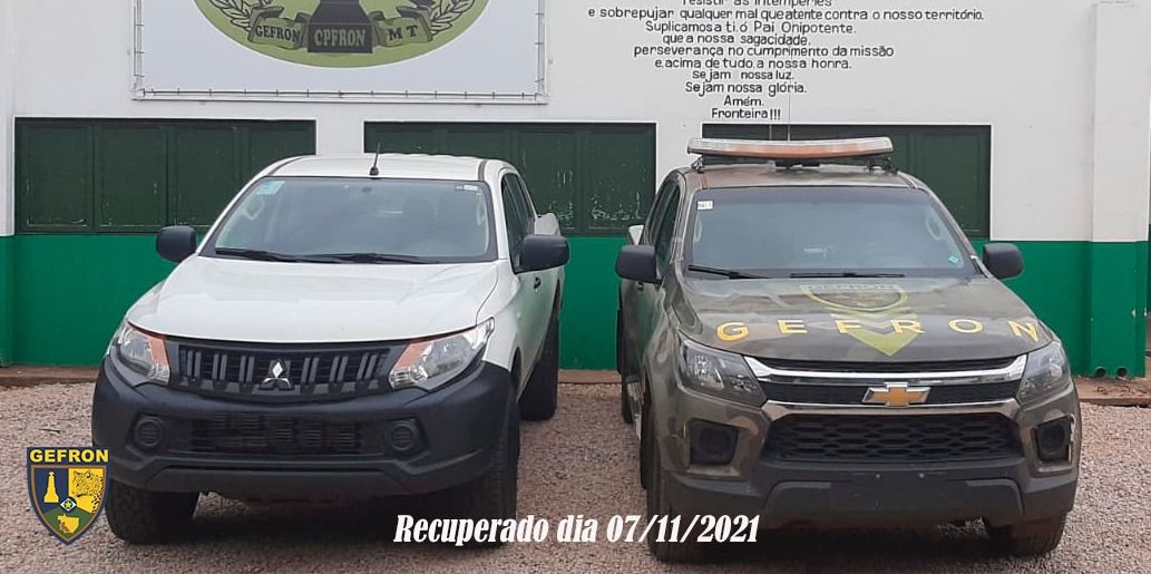 Duas camionetes roubadas, que seriam levadas para a Bolívia, foram apreendidas pelo Grupo Especial de Segurança na Fronteira (Gefron), neste domingo (07.10), em municípios da faixa de fronteira. Os veículos, que estão avaliados em R$ 400 mil, seriam mercadorias de troca por entorpecente no país vizinho. Dois homens foram presos suspeitos por envolvimento com o tráfico internacional de drogas.