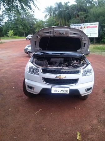 Foi feita a checagem do veículo pelo Sistema Nacional de Checagens (INFOSEG) junto a base do Gefron, em Porto Esperidião, sendo constatado que a caminhonete foi tomada de assalto em uma fazenda no município de Santo Antônio do Leverger-MT, juntamente com um caminhão que ainda não foi localizado.