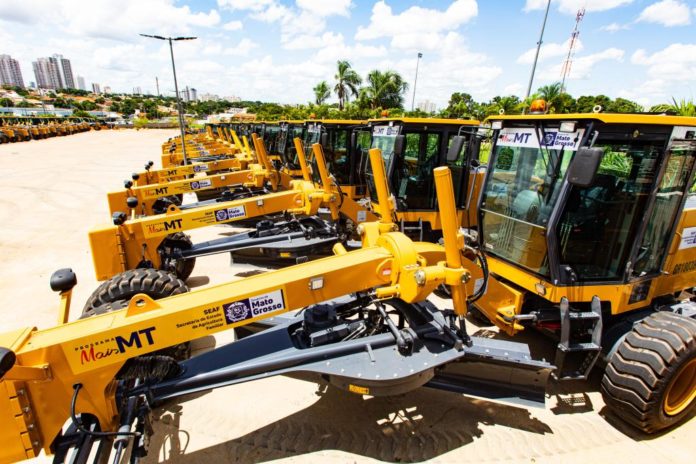 A Secretaria de Estado de Infraestrutura (Sinfra-MT) irá entregar 38 máquinas para 33 prefeituras e duas associações, entre elas estão 25 motoniveladoras, 7 pás-carregadeiras e 6 escavadeiras. Os equipamentos serão utilizados pelos municípios na manutenção de rodovias estaduais não pavimentadas e estradas vicinais. Investimento de R$ 25,3 milhões.