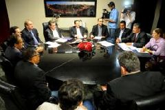Após reunião realizada na tarde de ontem terça-feira (26.04) no Palácio Paiaguás, o governador de Mato Grosso, Silval Barbosa, chegou a um acordo junto aos prefeitos de Cuiabá, Francisco Galindo, e de Várzea Grande, Tião Zaeli, para solucionar efetivamente os entraves nas obras que fazem parte do Programa de Aceleração do Crescimento (PAC) nos municípios.