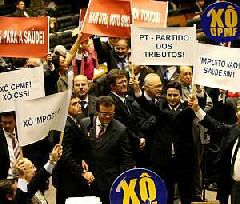 Fracassou mais uma vez a tentativa de votação na Câmara dos Deputados da criação da Contribuição Social para a Saúde (CSS), que substitui a antiga CPMF, cuja prorrogação foi derrubada ano passado pelo Senado. Segundo informações da Agência Câmara, o novo adiamento foi formalizado após acordo de lideranças fechado no plenário da Casa. O presidente da Câmara, Arlindo Chinaglia (PT-SP), marcou sessão para as 9h10 desta quarta para votar a proposta, cuja discussão teve início pouco depois das 11 horas.