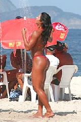 Gracyanne Barbosa, noiva do cantor Belo, aproveitou a quarta-feira de sol e calor no Rio de Janeiro para curtir a praia de Copacabana. Ela chamou atenção com um biquíni fio dental.