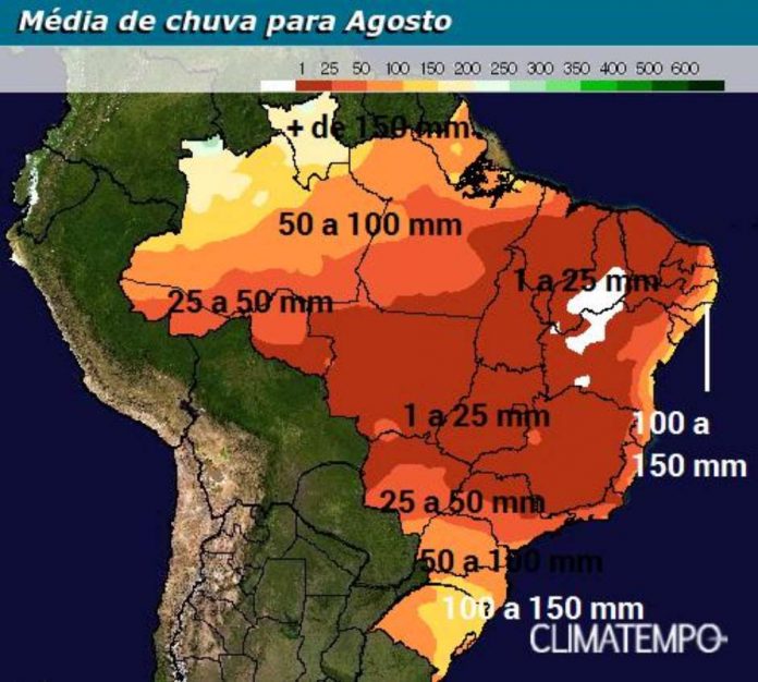 Os mapas mostram a estimativa de chuva para o Brasil até o dia 19 de agosto.