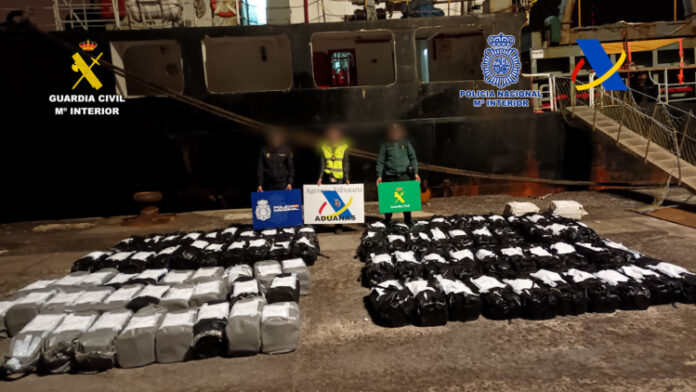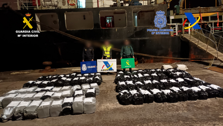 Posteriormente, na inspeção às áreas comuns do cargueiro, foi detectada a presença de um número indeterminado de fardos comumente utilizados para o tráfico de cocaína. Por conta disso, foram detidos os 15 tripulantes da embarcação, sendo 13 de nacionalidade paquistanesa. Os detidos e o navio foram levados para o porto de Santa Cruz de Tenerife, na Espanha. Tanto os presos, como o barco, a droga e o processo policial serão entregues ao Tribunal Central de Instrução, na qualidade de Guarda do Tribunal Nacional. Segundo a Guarda Civil, a abordagem foi difícil devido à situação do mar e ao grande tamanho do navio. A operação, dirigida e coordenada pela Procuradoria Antidrogas do Tribunal Nacional espanhol, soma-se às realizadas até o momento na chamada ‘Rota Atlântica’ da cocaína, conhecida por ser utilizada por barcos pesqueiros, mercadores e cargueiros que, procedentes da América do Sul, fazem transbordo de entorpecentes no meio do Atlântico para posterior introdução no continente europeu.