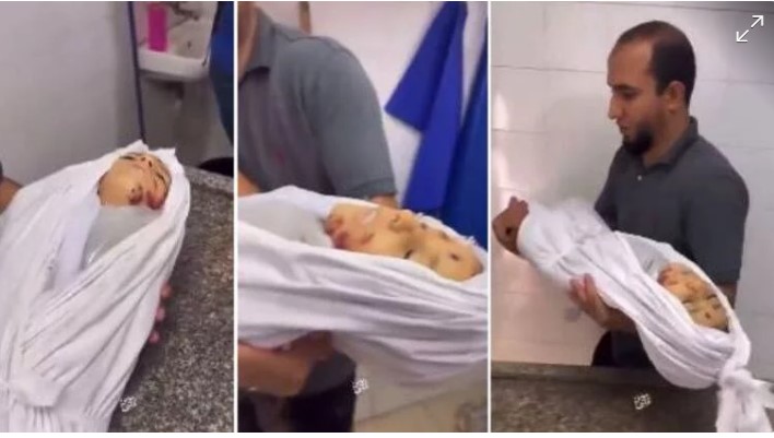 Hamas usa boneca de plástico para simular “vítimas” do contra-ataque israelense.