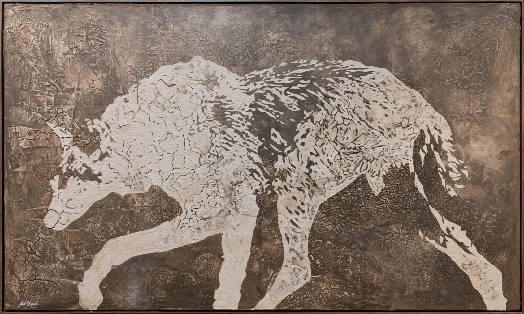 A exposição, com 10 obras, apresenta uma série de quadros pintados com terras e pigmentos naturais, retratando espécies de animais típicos do cerrado goiano. O bioma, que é o segundo maior da América do Sul e do Brasil, tem sua fauna e flora ameaçadas pela falta de preservação ambiental. O artista, natural do Rio Grande do Norte, mas que cresceu em Goiás, utiliza materiais como terra, tecidos com tingimento natural, carbonização de madeira e texturas com craquelamento para representar os desafios ecológicos do Cerrado, como as queimadas e a seca dos rios.