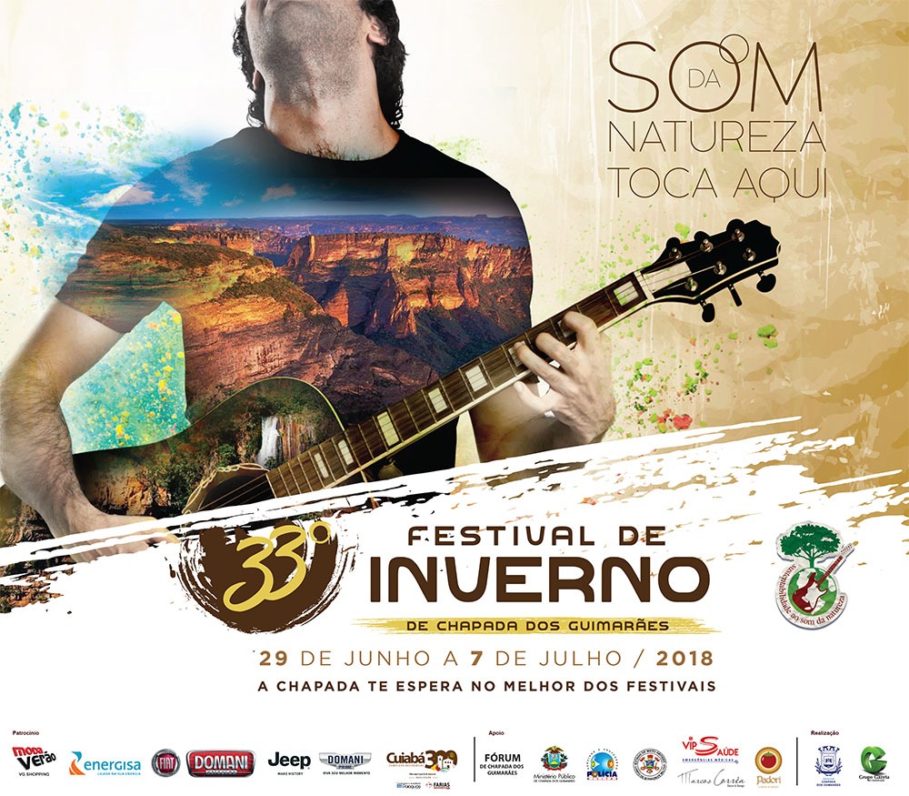 Nesta quinta-feira (14/06), às 20 horas, na sede da Secretaria Municipal de Turismo, Cultura e Meio Ambiente, acontece o lançamento do 33º Festival de Inverno de Chapada dos Guimarães, considerado um dos maiores festivais da região CentroOeste. Grandes nomes da música brasileira, do Sertanejo ao Rock, já passaram pelos palcos do Festival, realizado em parceria com o Grupo Gazeta de comunicação, com patrocínio do Governo do Estado.