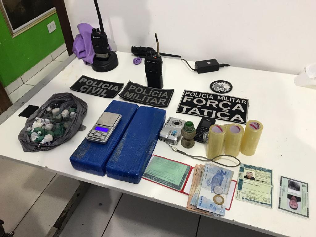 No quintal da casa onde ocorreu a prisão, no bairro Liberdade, os policiais encontraram quase dois quilos de maconha e dezenas de porções de pasta base enterradas. Na mesma moradia também foram apreendidos materiais usados para embalar droga, balança de precisão, entre outros apetrechos usados no tráfico.