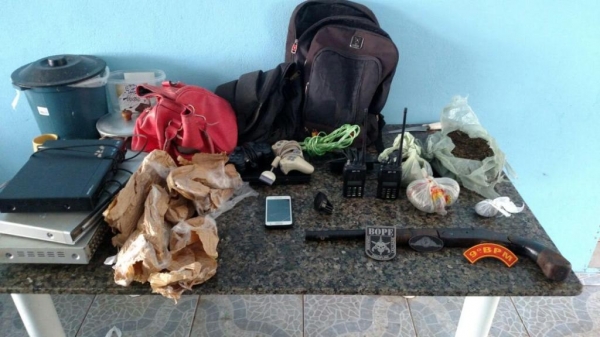 Diante da suspeita de ponto de venda de entorpecentes, a equipe realizou buscas no interior da residência, onde prendeu o segundo suspeito e encontrou uma grande quantidade de maconha, uma espingarda calibre 28, três aparelhos de DVD. Lá também havia um vídeo-game, além de dois rádios transmissores que eram utilizados para copiar a freqüência de radio da PM. Ou seja, a dupla acompanhava a movimentação da polícia para traçar suas ações criminosas.