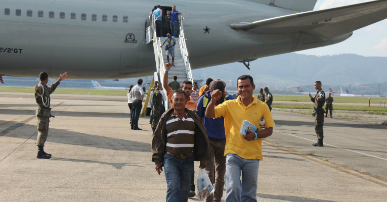 Os primeiros 116 imigrantes venezuelanos que buscaram abrigo no Brasil foram transferidos nesta quinta-feira (5) de Roraima para São Paulo (SP) com apoio do Governo do Brasil e da Organização das Nações Unidas (ONU). Nesta sexta-feira (6), mais 83 pessoas desembarcam na capital paulista e outras 69 em Cuiabá (PR). O deslocamento dos imigrantes é feito com aviões da Força Aérea Brasileira (FAB).