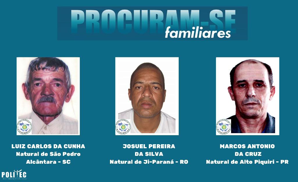 A Diretoria Metropolitana de Medicina Legal de Cuiabá está à procura das famílias de três homens identificados para a liberação dos corpos na unidade. Um deles é Luiz Carlos da Cunha, 78 anos, natural de São Pedro Alcântara (SC). Ele faleceu em casa, no município de Chapada dos Guimarães, onde morava sozinho, no dia 21 de dezembro do ano passado.