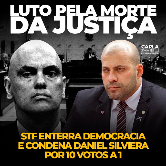 O Supremo Tribunal Federal condenou, nesta quarta-feira (20), por 10 votos a 1, o deputado federal Daniel Silveira (PTB-RJ) a 8 anos e 9 meses de prisão, em regime inicial fechado, além da perda do mandato e multa. De acordo com o STF, ele cometeu os crimes de coação no curso do processo e de ameaça à abolição do Estado democrático de direito. O parlamentar fez diversos ataques ao próprio Supremo e aos ministros, inclusive incitando ações contra a integridade física dos magistrados.