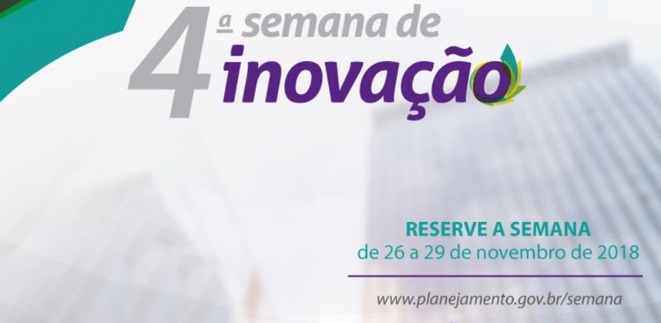 Estão abertas as inscrições para a 4ª Semana de Inovação, cujo tema é “Serviço Público para o Futuro”. O evento será realizado no Instituto Serzedello Corrêa, do Tribunal de Contas da União (TCU), em Brasília, de 26 a 29 de novembro de 2018.