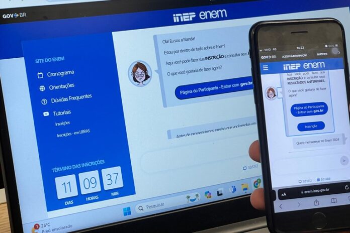 Para se inscrever, os candidatos devem acessar a Página do Participante do Inep e pagar a taxa de R$ 85. Em seguida, devem informar CPF, data de nascimento, dados pessoais e endereço, além de escolher o idioma das questões de língua estrangeira. O resultado da solicitação de isenção do Enem 2024 estará disponível na mesma página, onde o estudante deve fazer login com CPF e senha. O calendário do Enem 2024 inclui prazos para inscrições, pagamento da taxa, solicitação de atendimento especializado, resultado de pedidos negados, divulgação dos locais de prova, aplicação do exame, divulgação do gabarito e resultado final.