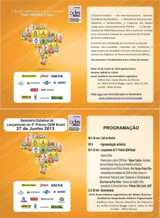 Constam ainda na programação, apresentações de uma prática premiada, com o professor Nicolau Priante Filho e da realidade dos ODM em Mato Grosso e o Movimento Nacional pela Cidadania e Solidariedade, com a diretora do Instituto Orbis, Diva Irene da Paz Vieira. E a apresentação da Carta de Mato Grosso com o professor Abílio Fernandes.