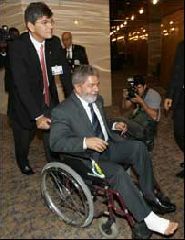 Com dificuldade de caminhar, Lula chegou a circular pelo hotel em uma cadeira de rodas, empurrada pelo seu médico pessoal, Cleber Ferreira. O problema no pé também fez o presidente cancelar a participação na inauguração do setor consular da embaixada brasileira em Abuja.