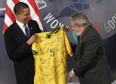 O presidente Luiz Inácio Lula da Silva aproveitou o encontro com o presidente americano, Barack Obama, durante a cúpula do G8 em L”Áquila na Itália para cumprir uma promessa feita na véspera da reunião. Lula entregou a Obama uma camiseta da Seleção brasileira autografada por todos os jogadores que foram campeões da Copa das Confederações na África do Sul no mês passado.