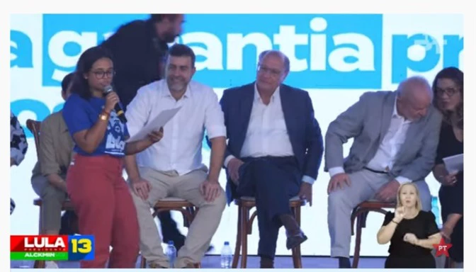 O candidato a vice-presidente de Lula, Geraldo Alckmin (PSDB) e o candidato ao governo do Rio de Janeiro, Marcelo Freixo (PSB), acompanharam a leitura atentamente, sem distrações, mas a forma como o petista se comportou gerou debate nas redes sociais.