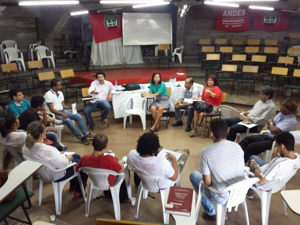 Essa foi a pauta de debate da primeira reunião do Comitê em Defesa da Educação Pública e Gratuita, realizada nessa segunda-feira, 26/10, no auditório da Associação dos Docentes da UFMT (Adufmat-Ssind), com a presença de representantes do Sindicato dos Trabalhadores Técnicos e Administrativos da Universidade Federal de Mato Grosso (Sintuf-MT), Diretório Central dos Estudantes da UFMT (DCE-UFMT), Seção Sindical dos Docentes do IFMT (Sesdifmt), Centro Acadêmico de Direito da UFMT, além da própria Adufmat-Ssind e do Comando Local de Mobilização Docente.