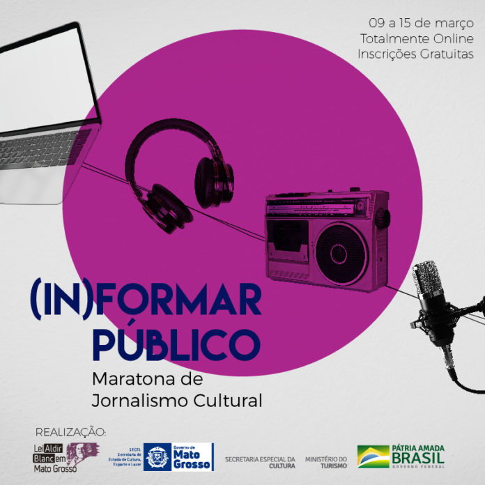 O projeto “Maratona Jornalismo Cultural – (In)Formar Público” foi contemplado pelo edital da MT Nascentes na categoria de “projetos de formação em backstage”, e é realizado pela Secretaria do Estado de Cultura, Esporte e Lazer (Secel-MT) com recursos federais da Lei Aldir Blanc concedidos pelo Governo Federal via Secretaria Nacional da Cultura do Ministério do Turismo.