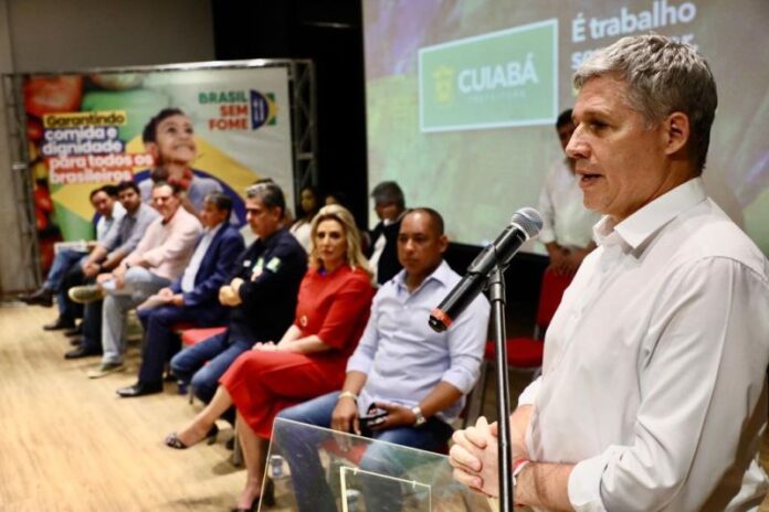 “Me enche de orgulho estar aqui e saber que a Prefeitura de Cuiabá trabalha com tamanha profundidade, intensidade e alcance na vontade de cuidar do nosso povo.” A avaliação foi feita pelo ministro do Desenvolvimento Agrário e da Agricultura Familiar, Paulo Teixeira, na manhã desta sexta-feira (22), durante a solenidade da Prefeitura de Cuiabá para assinatura do termo de convênio para o Programa Prato Cheio e o Plano Brasil Sem Fome, do governo federal. Participaram da solenidade o ministro de Desenvolvimento Social e Combate à Fome, Wellington Dias, e o de Agricultura e Pecuária, Carlos Fávaro.